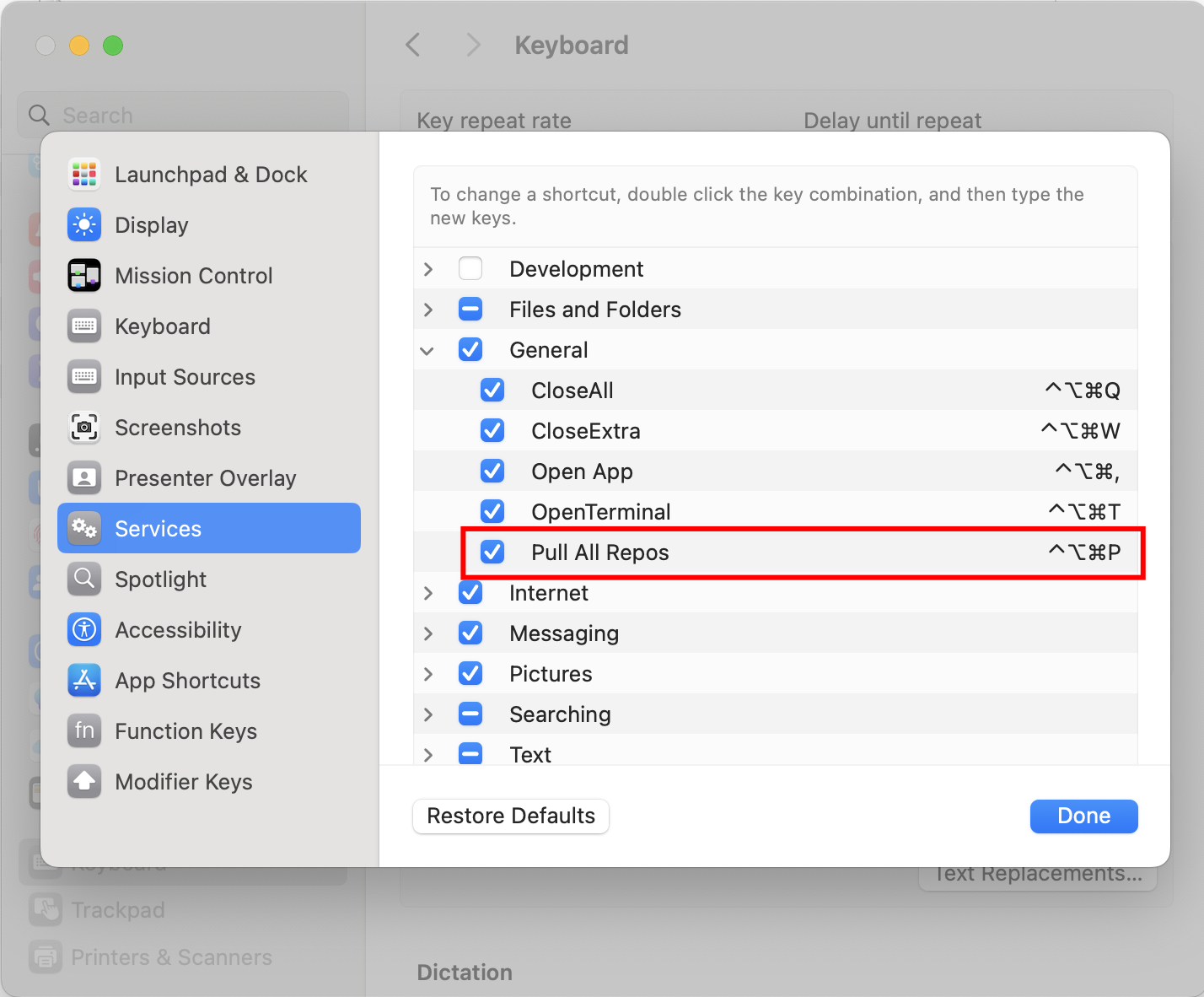 - Select “Services” on the left, and then open the “General” dropdown menu on the right. You’ll see the “Pull All Repos” here.