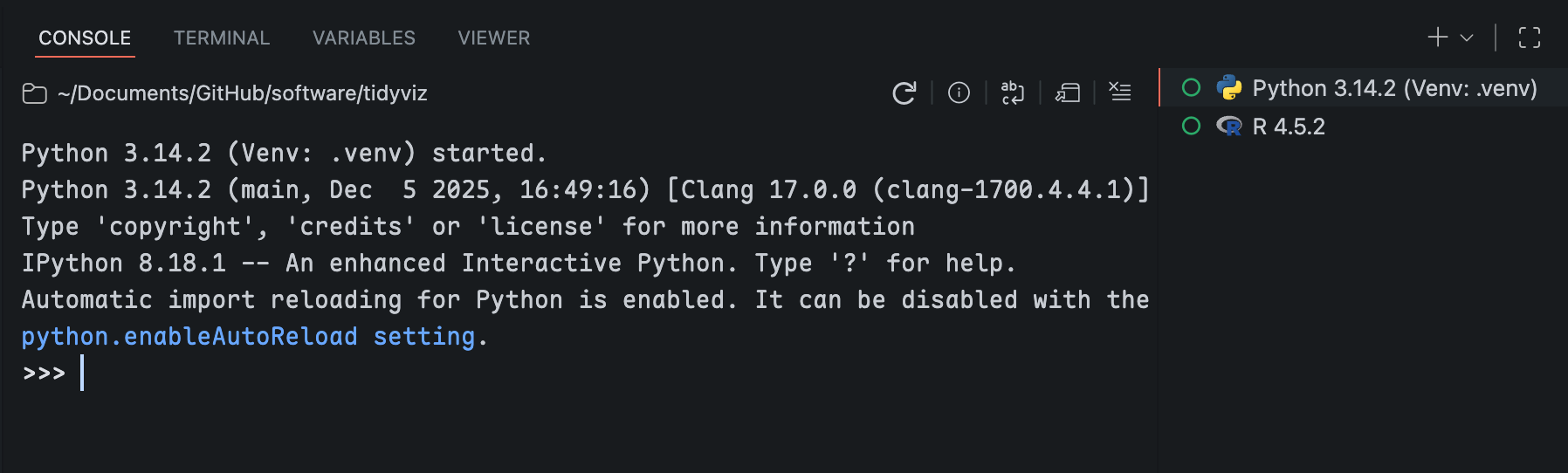 - Positron: Positron is a modern IDE published by Posit and is my favorite. It’s a VS Code-based IDE and has great support for both Python and R with lots of tailored features for data science.