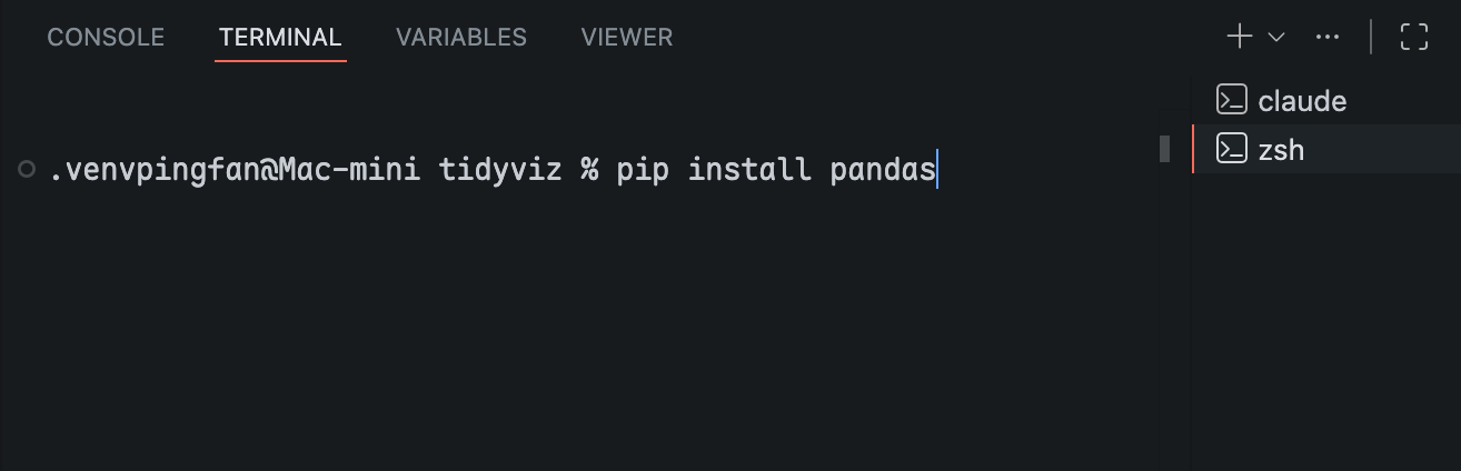source .venv/bin/activateGreat! Now you are done with the setup and can start calling pip to install packages locally within this virtual environment, for example: